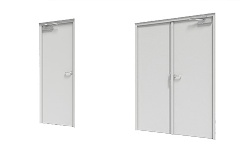 Bloc-porte métallique coupe-feu avec différents choix de couleurs et de formes.